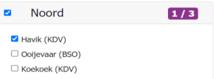 B) Per locatie - activeer een locatie door op de naam van de regio/categorie te klikken en vervolgens een locatie aan te vinken