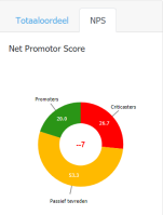 De NPS peilt bij de respondent in welke mate hij/zij de organisatie aan anderen zou aanbevelen. De NPS wordt berekend als het verschil tussen het percentage promotors en criticasters. De NPS zelf wordt niet uitgedrukt als percentage maar als een absoluut getal (tussen –100 en +100). Een positieve NPS (0) wordt als goed beschouwd.