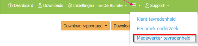 Zodra je bent ingelogd kies je in de groene balk voor het rastertjes en daarna Medewerkertevredenheidsonderzoek